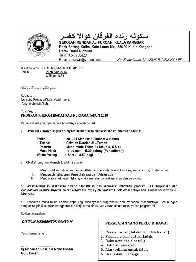 Contoh Surat Makluman Ibu Bapa Utk Program
