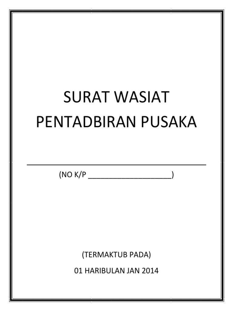 Harta Contoh Surat Wasiat Di Malaysia
