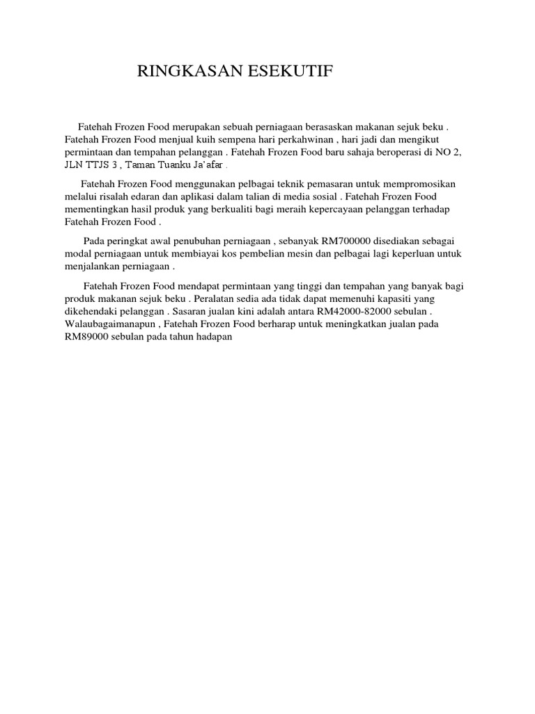 Doc Rancangan Perniagaan Frozen Food Oleh Hayrold Lim Khai Khian Fazil Marujal Profil Ringkas Joy Atie Academia Edu