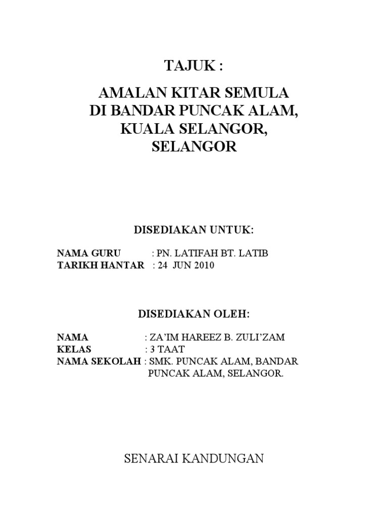 Pendahuluan Folio Geografi Tingkatan 3 Kitar Semula