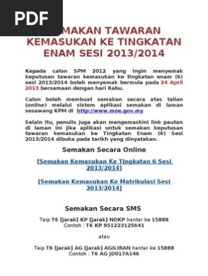 Semakan Tingkatan 6 2020 2021 Semak Keputusan Tawaran Form 6