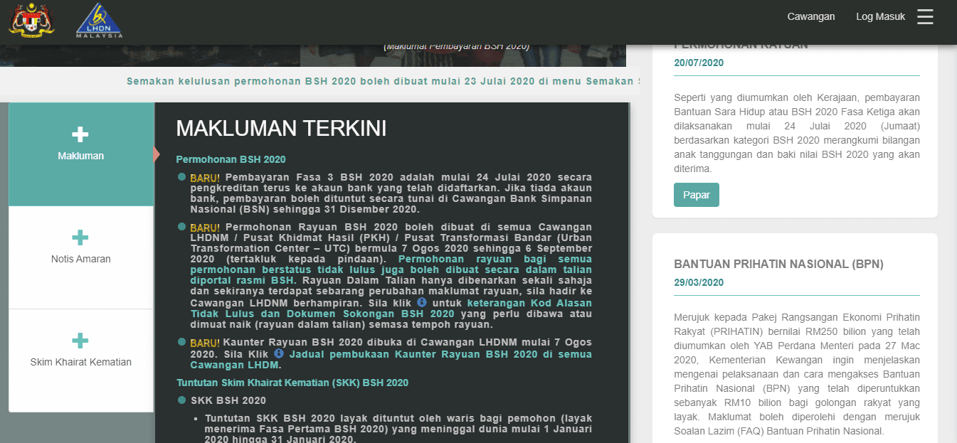 Permohonan Rayuan Bantuan Sara Hidup Bsh Fasa 3 Dilanjutkan Sehingga 6 September 2020 Mohon Segera Mingguan Kerja