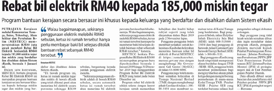 Rebat Bil Elektrik Rm40 Untuk B40 Semakan Online Semakan My