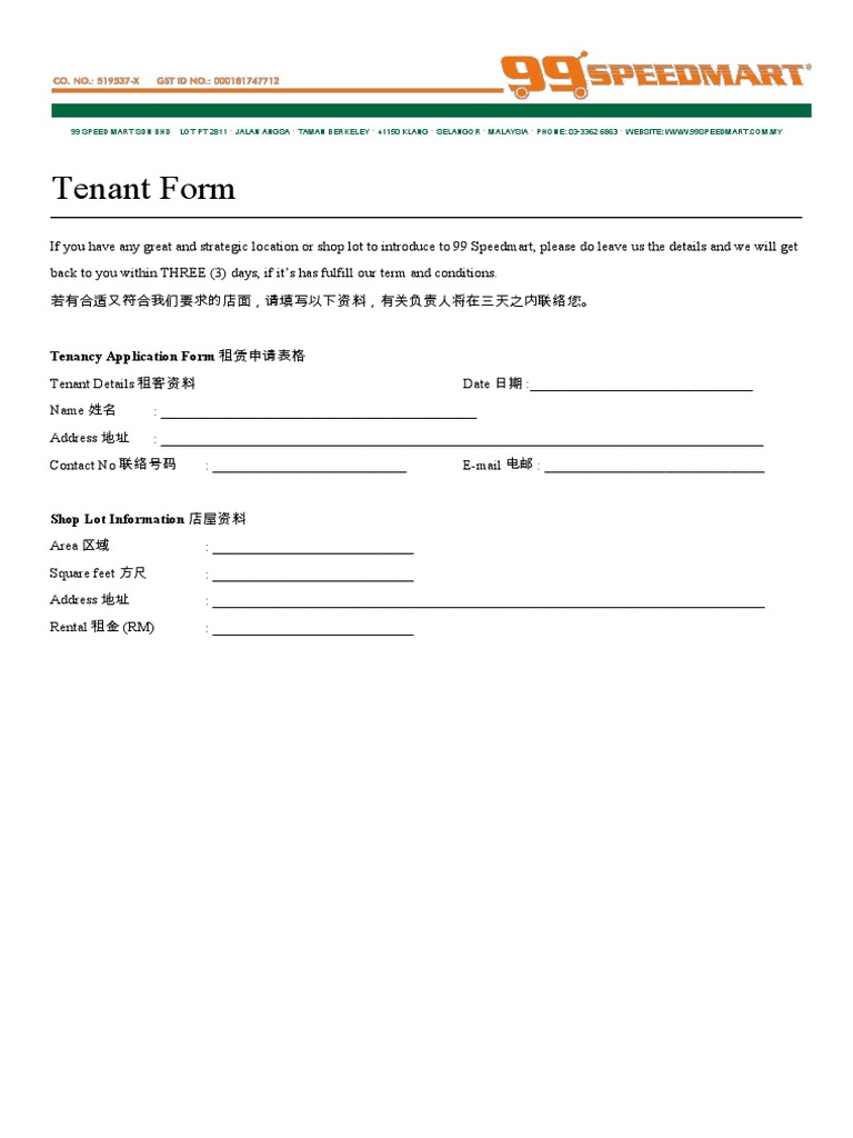 Tenant Form 2017 Pdf