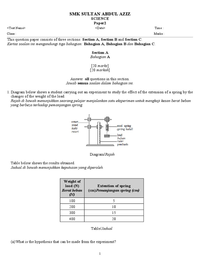 Contoh Soalan Sains Spm Kertas 2