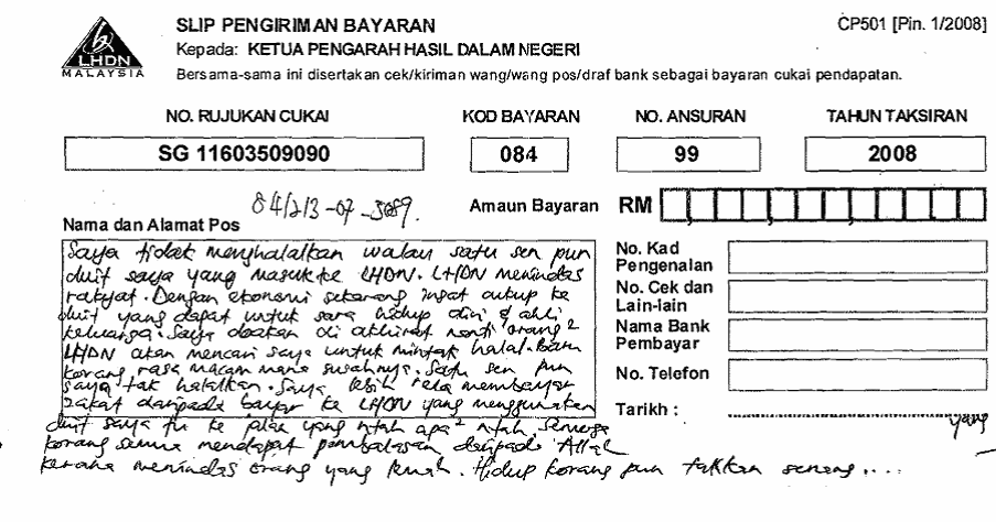 Nam A Bank Pembayar No Telefon Sila Catatkan Nama Alamat Nombor Telefon Nombor Cukai Pendapatan Tahun Taksiran Dan Kod Bayaran Di Belakang Instrumen Bayaran 3 Pdf Document