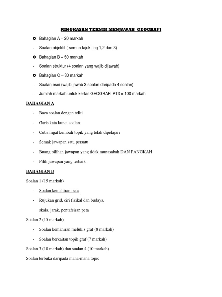 Bahagian A Ringkasan Teknik Menjawab Geografi