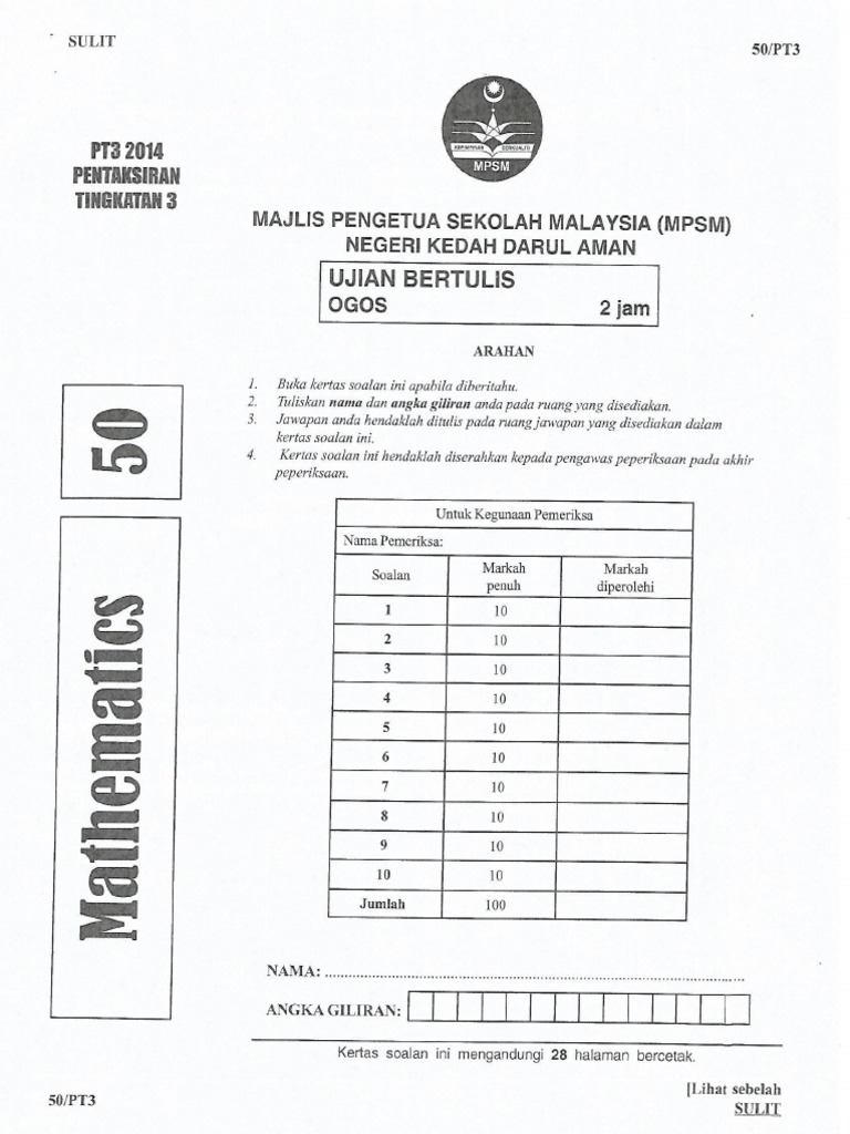 Koleksi Percubaan Matematik Pt3 Sumber Pendidikan