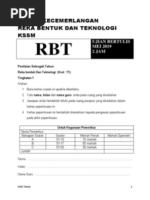 Soalan Percubaan Reka Bentuk Dan Teknologi Rbt Pt3 2019 Jawapan Bumi Gemilang