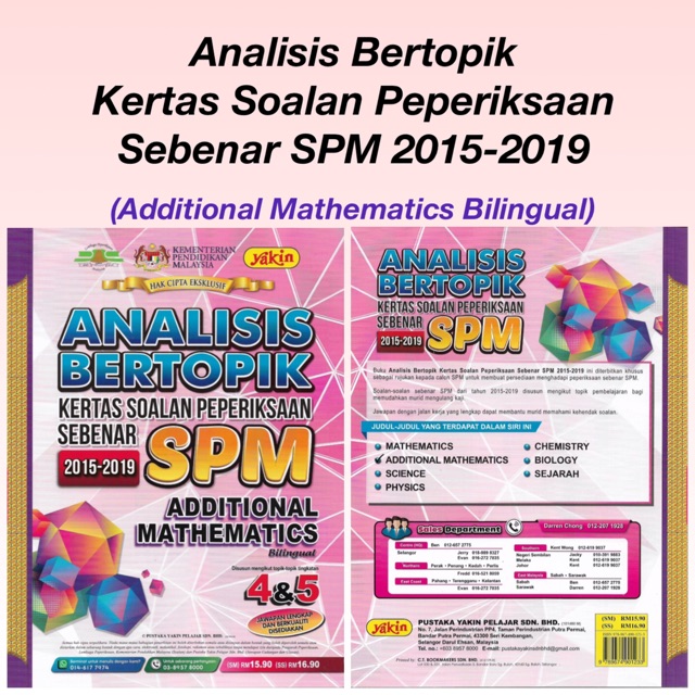 Yakin Analisis Bertopik Kertas Soalan Peperiksaan Sebenar Spm 2015 2019 Additional Mathematics Bilingual Shopee Malaysia