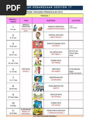 Subtema Kemudahan Lembaran Kerja Tema Kemudahan Awam Prasekolah