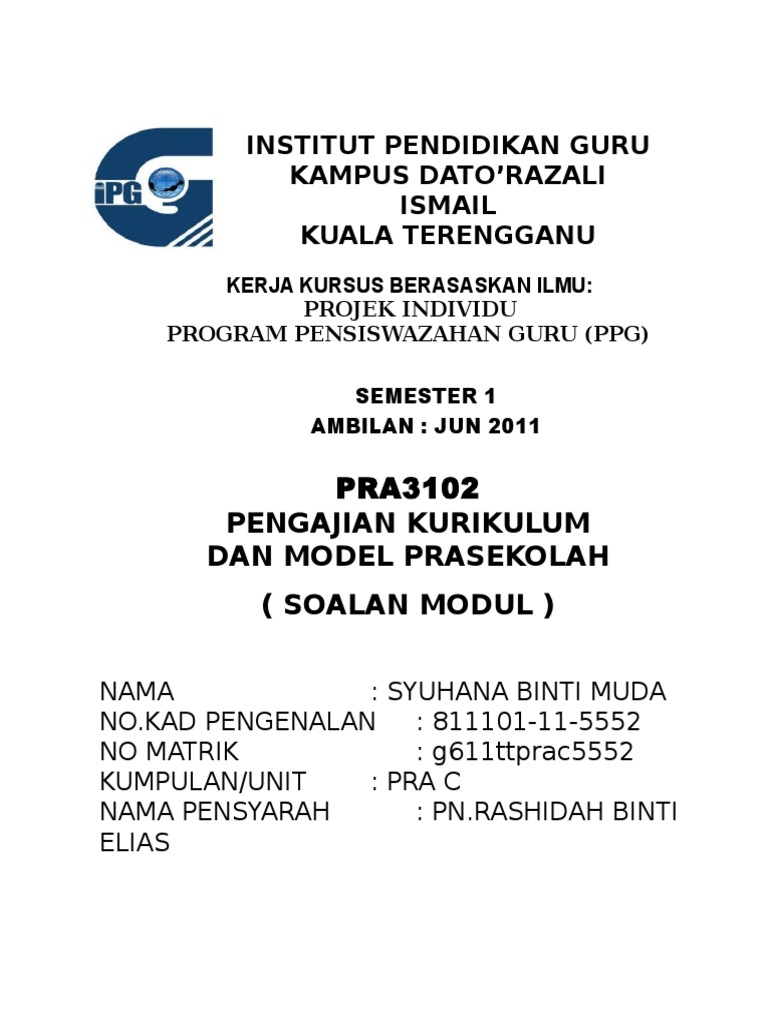 Bonda Rancangan Pengajaran Harian Prasekolah Bentuk