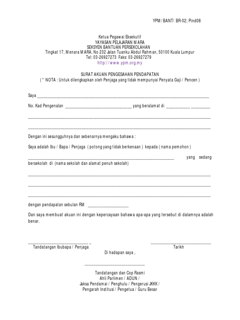 Surat Akuan Tidak Bekerja Zakat Sabah Wwwww