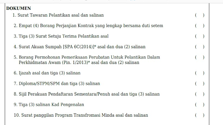 Prosedur Perkhidmatan Pkdkt Prosedur 6a Ii Surat Akuan Berkanun Borang Spa 6c 2014 Iii Surat Akuan Doktor Borang Permohonan Pemeriksaan Perubatan Untuk Pelantikan Ke Dalam Pdf Document