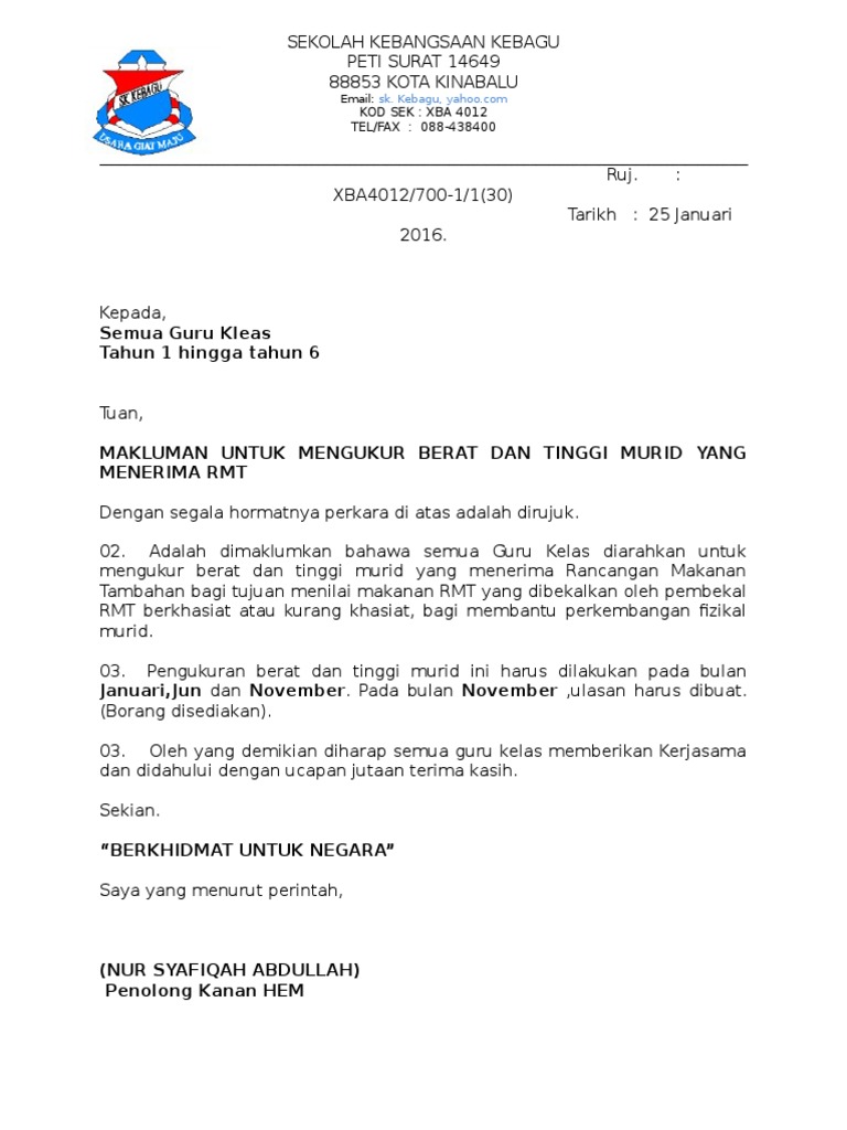 Surat Makluman Edaran Kepada Semua Murid Sr Islam Al Irsyad Balok Facebook