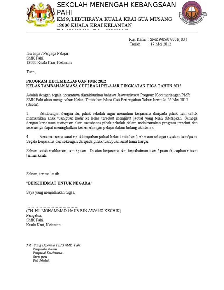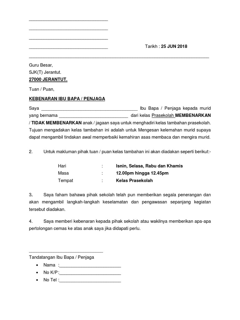 Contoh Surat Makluman Ibu Bapa Utk Program