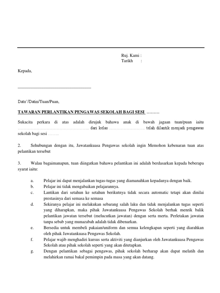 Surat Rasmi Perletakan Jawatan Pengawas Sekolah Surat Rasmi 1