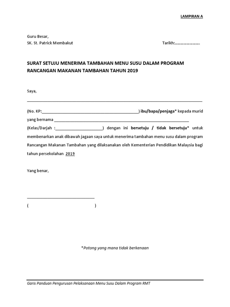 Surat Setuju Terima Bantuan Rancangan Makanan Tambahan 1 Malaysia