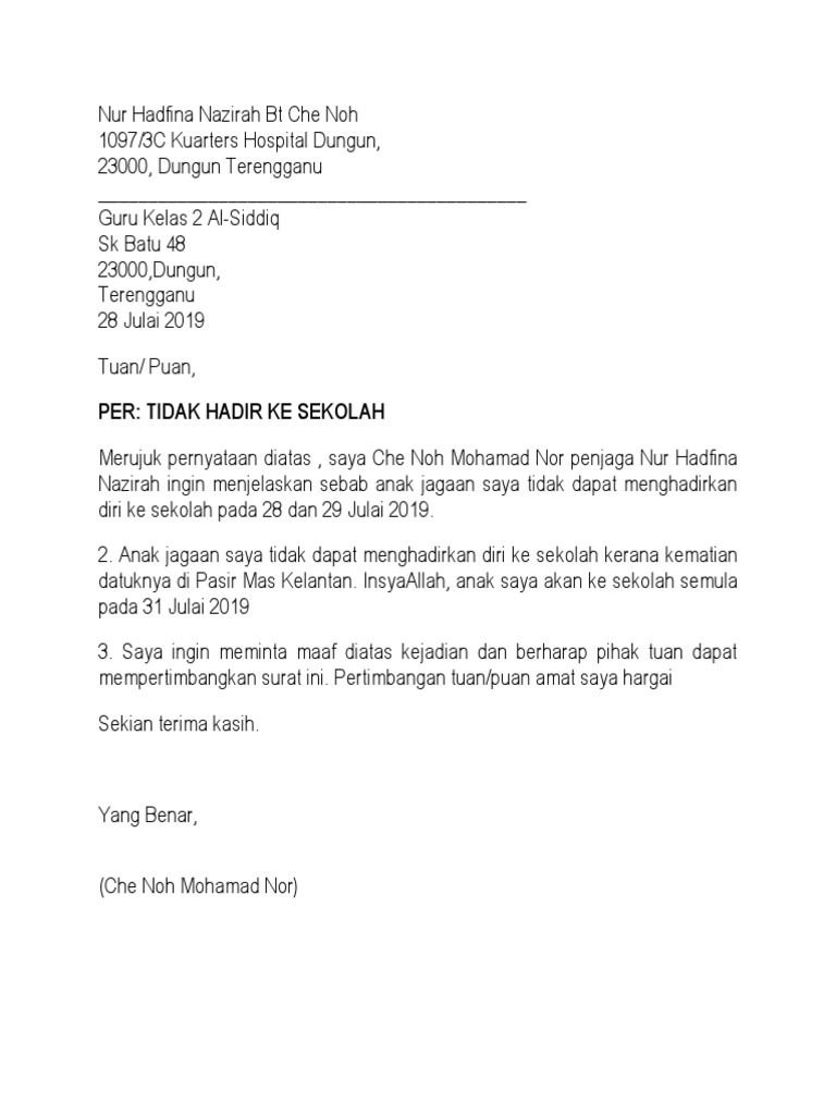 Contoh Surat Rasmi Tidak Hadir Ke Sekolah Kerana Kematian Bagikan Contoh