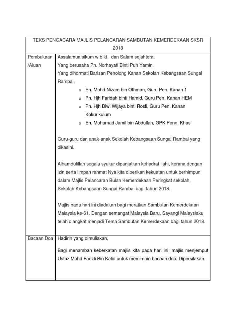 Doc Teks Pengacara Majlis Sambutan Bulan Kemerdekaan Anisa Syahida Academia Edu