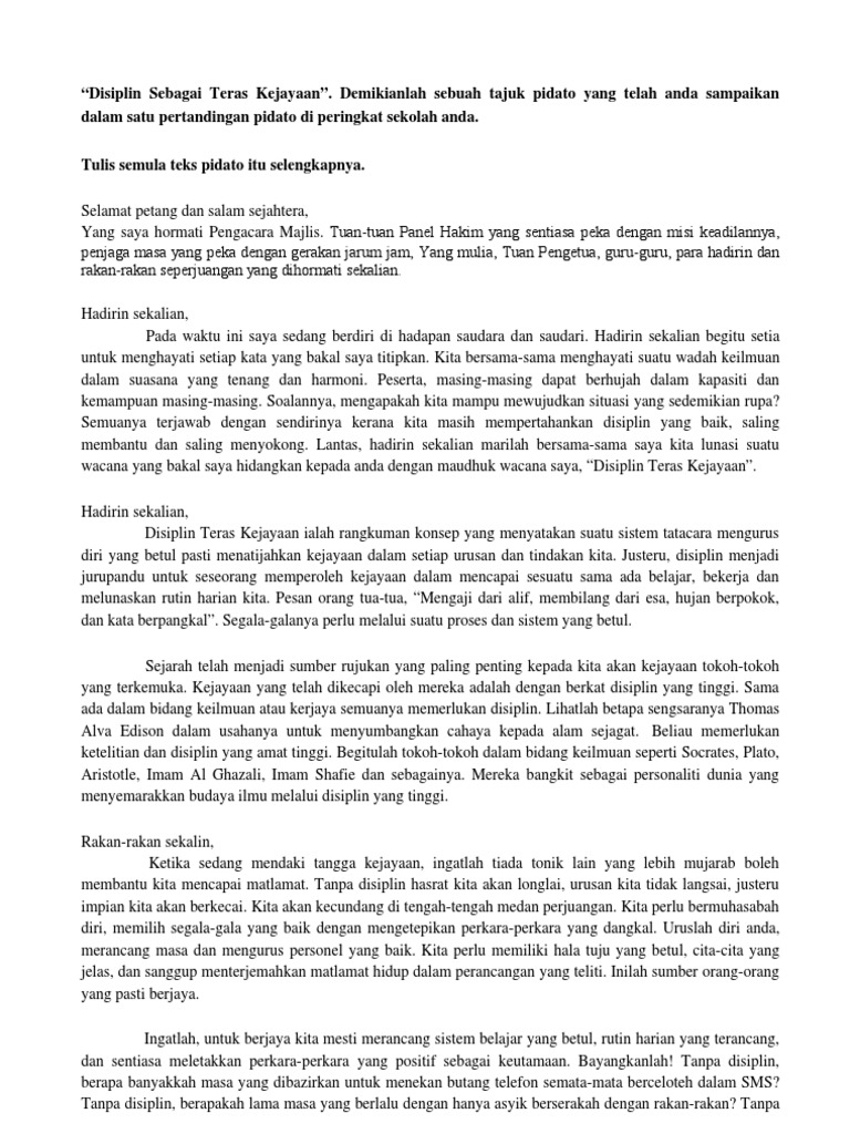 Contoh Soal Shu Contoh Pidato Kebangsaan