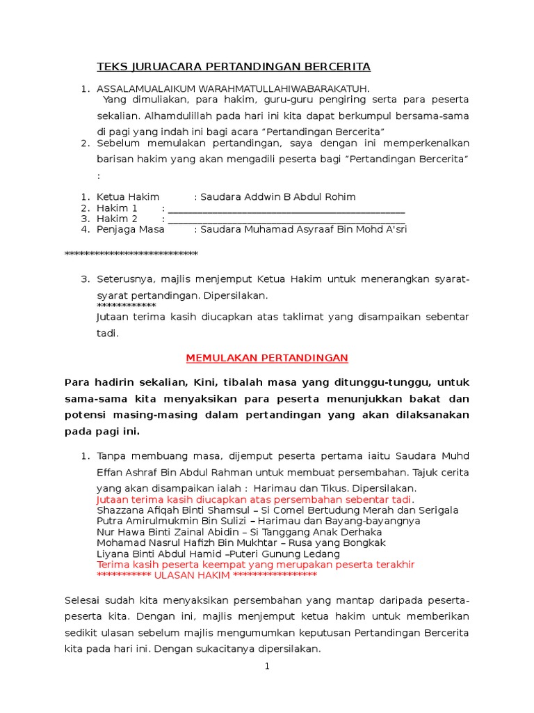 Teks pengacara majlis pertandingan forum remaja peringkat negeri pulau pinang 2018 anjuran smka saf. Mengumumkan ketibaan yang berhormat datuk hj daud abdul rahman menteri muda hal ehwal islam di pejabat ketua menteri sarawak. Untuk pengetahuan semua teks teks ucapan ini bukanlah miliknya kesemuanya. Teks pengacara majlis pertandingan syarahan dan ujian bertulis kumpulan kerjasama sjkc sjkt pejabat pendidikan wilayah sentul ta.