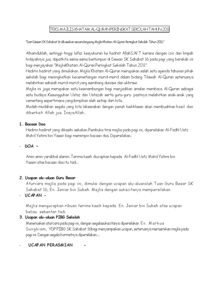 Teks Pengacara Majlis Khatam Quran Skbt 2009 Doc Document
