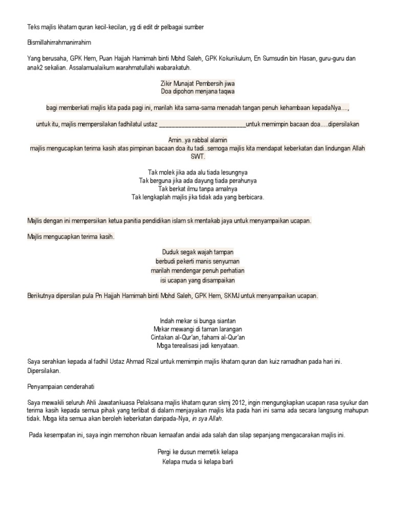 Teks Pengacara Majlis Khatam Al Quran Docx
