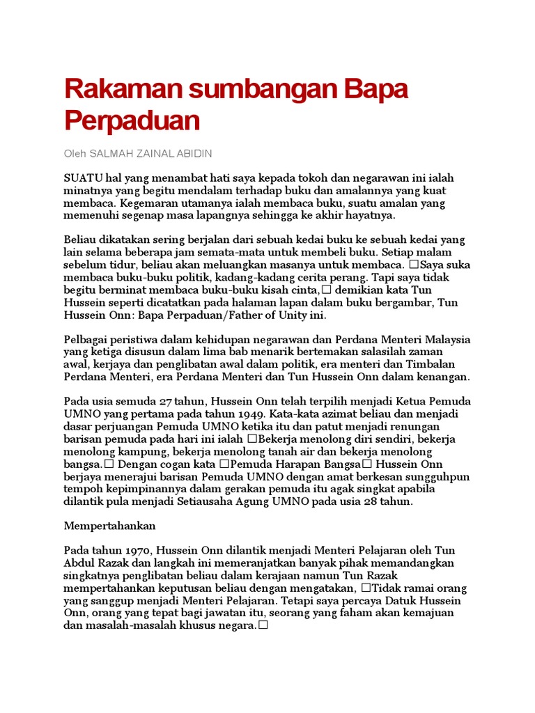 Doc Tun Hussein Onn Dan Legasinya Lutfan Classmate Academia Edu