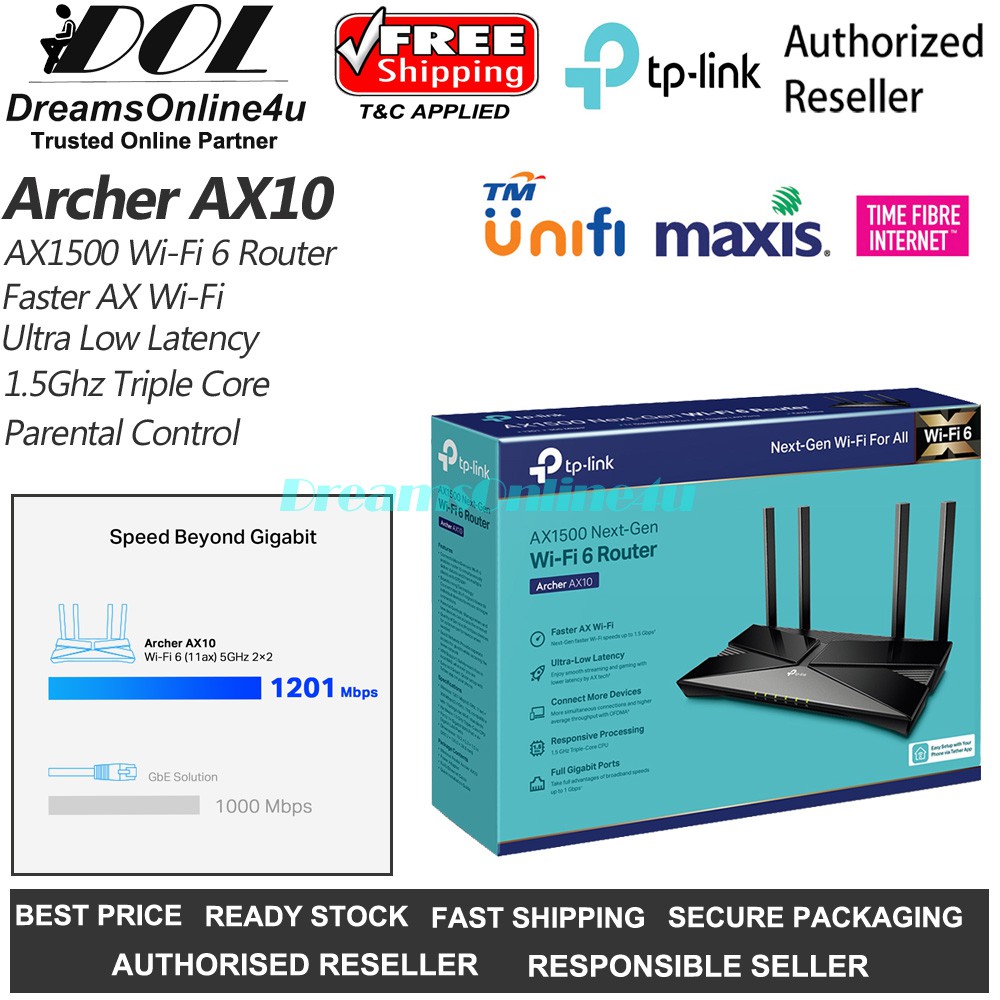 Tp Link Archer Ax10 Ax1500 Wi Fi 6 Router Unifi Time 3 Years Warranty Shopee Malaysia