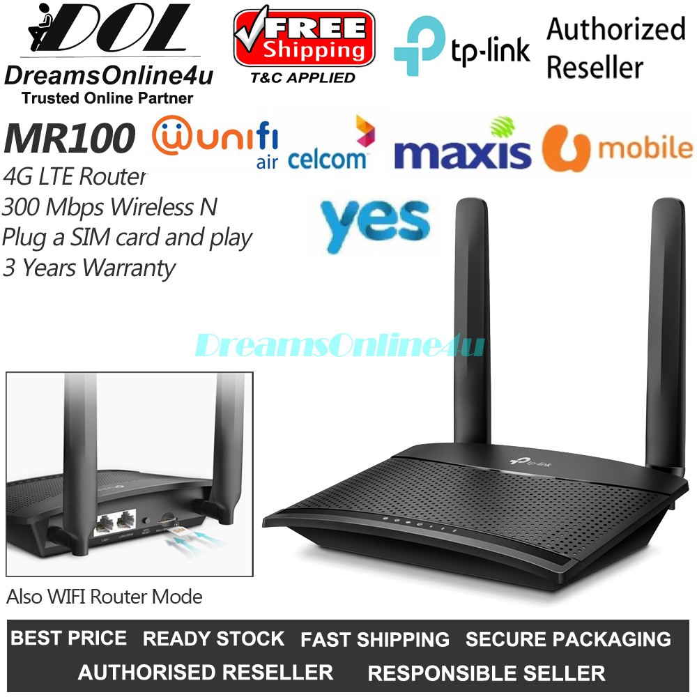 Tp Link Tl Mr100 Mr100 300 Mbps Wireless N 4g Lte Router Unifi Air Yes Umobile 3 Years Warranty Shopee Malaysia